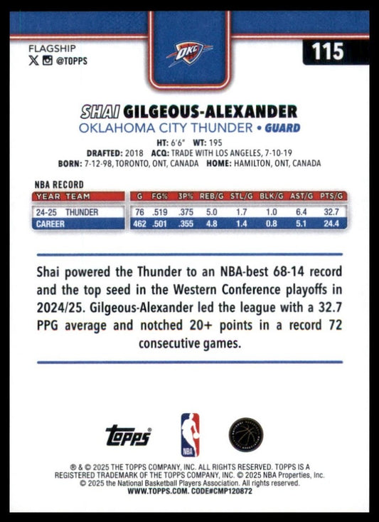 2025-26 Topps Shai Gilgeous Alexander #115 Oklahoma City Thunder Basketball Card