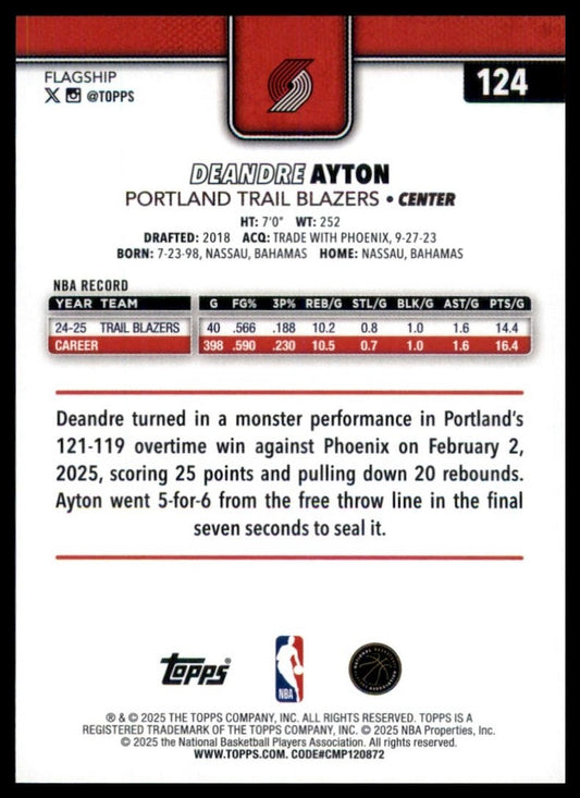 2025-26 Topps Deandre Ayton #124 Portland Trail Blazers Basketball Card NBA
