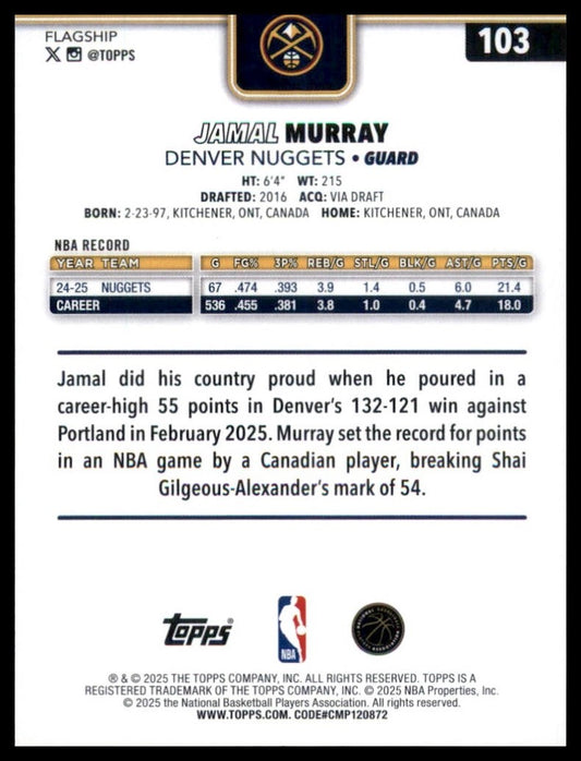 2025-26 Topps Jamal Murray #103 Denver Nuggets Basketball Card NBA Sports