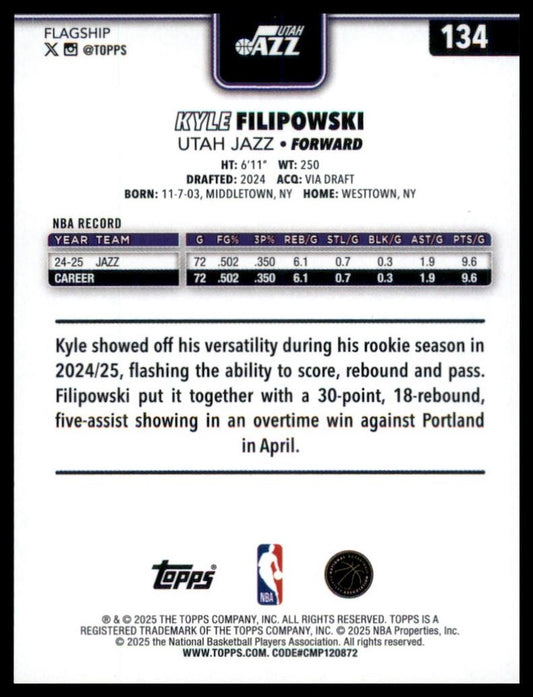 2025-26 Topps Kyle Filipowski #134 Utah Jazz Basketball Card NBA Sports