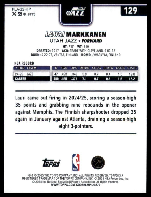 2025-26 Topps Lauri Markkanen #129 Utah Jazz Basketball Card NBA Sports