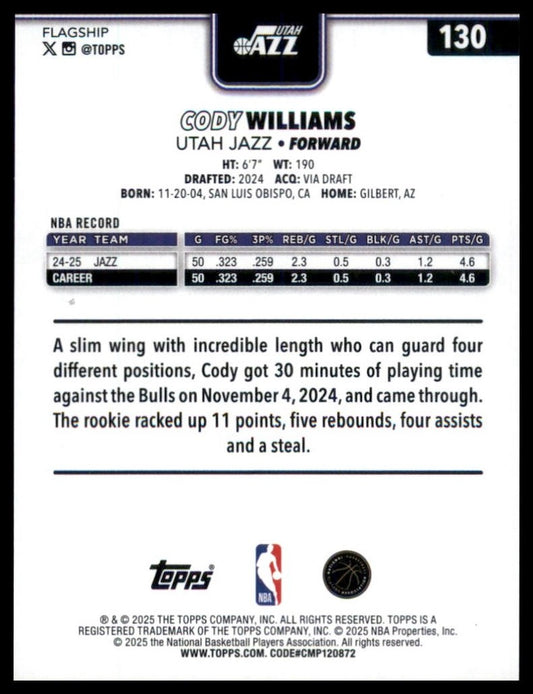 2025-26 Topps Cody Williams #130 Utah Jazz Basketball Card NBA Sports