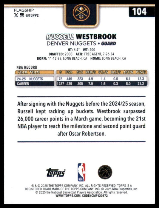 2025-26 Topps Russell Westbrook #104 Denver Nuggets Basketball Card NBA Sports