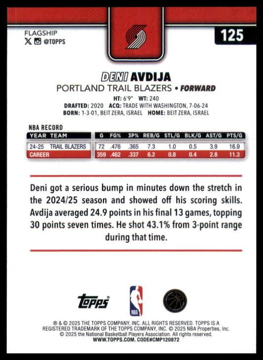 2025-26 Topps Deni Avdija #125 Portland Trail Blazers Basketball Card NBA Sports