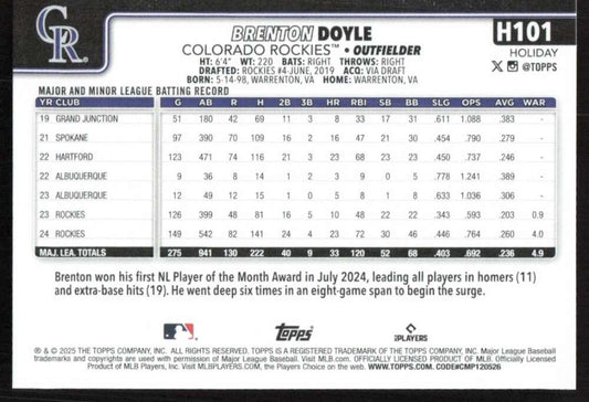 2025 Topps Holiday #H101 Brenton Doyle NM-MT Rockies ID:79915