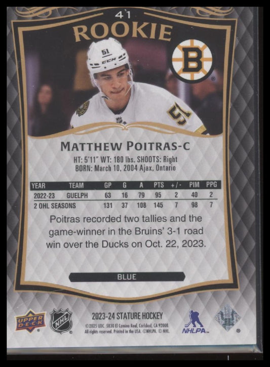 2024-25 UD Stature Matthew Poitras #41 2023-24 Blue #/99 Bruins