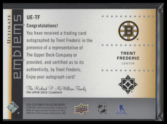 2024-25 UD Ultimate Collection Trent Frederic #UE-TF Emblems Auto Bruins