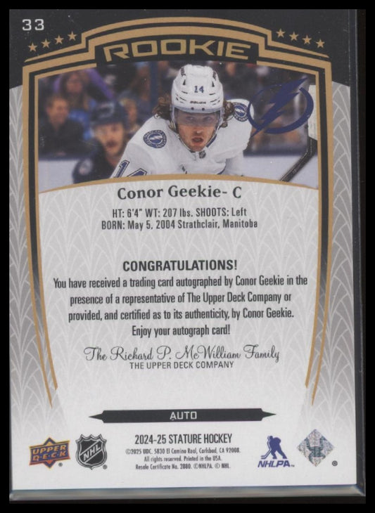 2024-25 Upper Deck Stature Conor Geekie #33 Auto AU Tampa Bay Lightning