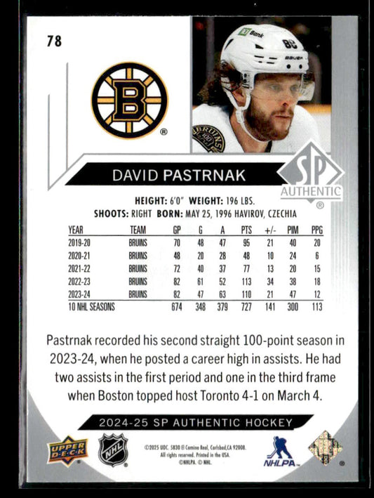 2024-25 SP Authentic David Pastrnak #78 Boston Bruins