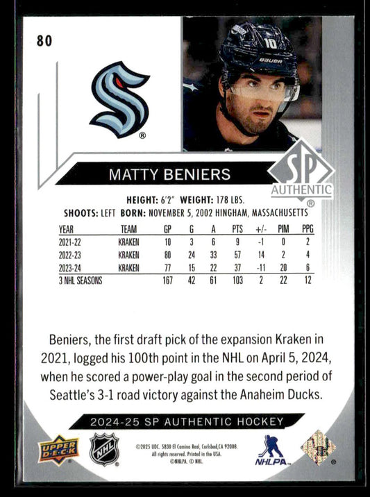 2024-25 SP Authentic Matty Beniers #80 Seattle Kraken