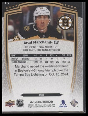 2024-25 Upper Deck Stature Brad Marchand #17 Red SN #/249 Boston Bruins