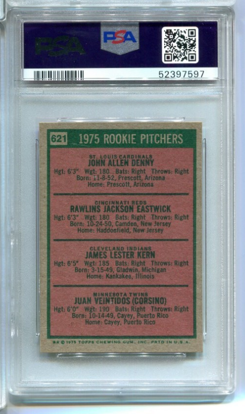 1975 TOPPS MINI #621 Rookie Pitchers PSA 8 John Denny Jim Kern Rawly Eastwick RC