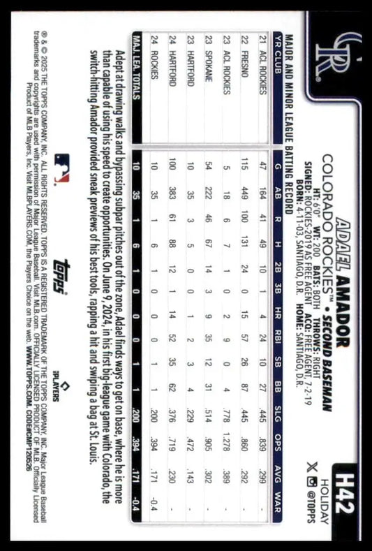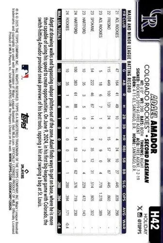 2025 Topps Holiday #H42 Adael Amador NM-MT RC Rookie Rockies ID:79855