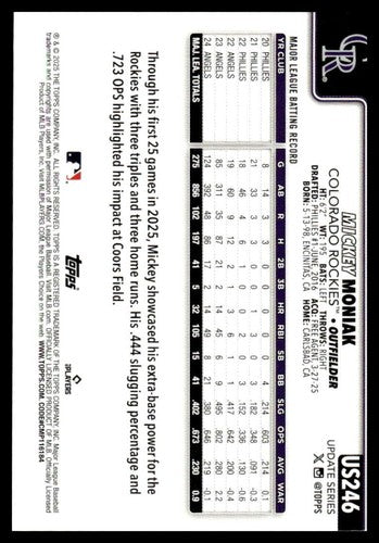2025 Topps Update #US246 Mickey Moniak NM-MT Rockies ID:80036