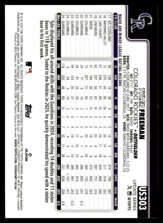 2025 Topps Update #US303 Tyler Freeman NM-MT Rockies ID:80045