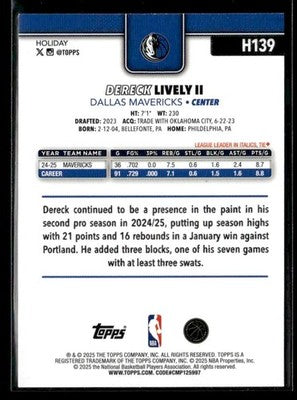 2025-26 Topps Holiday Glitter Dereck Lively II #H139 Dallas Mavericks Basketball