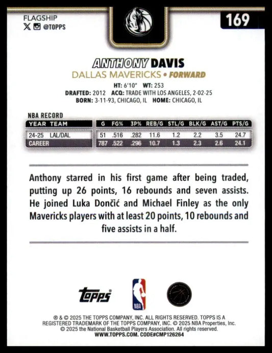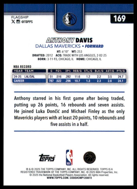 2025-26 Topps Anthony Davis #169 Dallas Mavericks Basketball Card NBA Sports