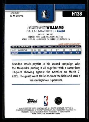 2025-26 Topps Holiday Brandon Williams #H138 Dallas Mavericks