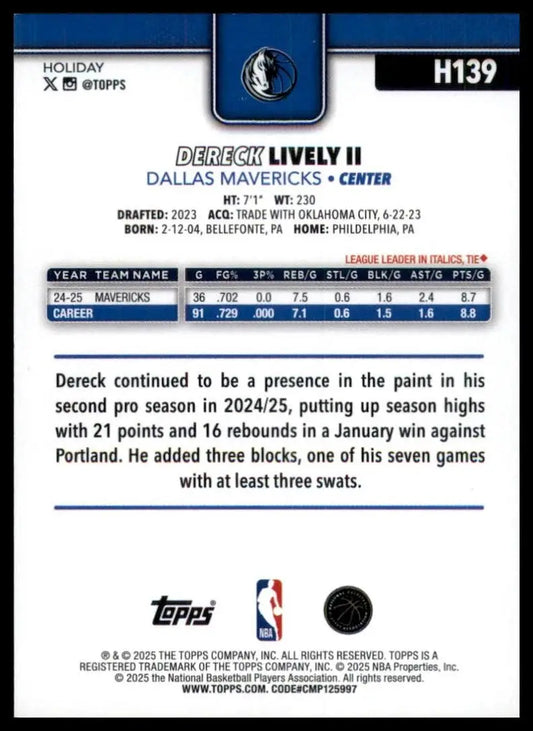 2025-26 Topps Holiday Dereck Lively II #H139 Dallas Mavericks