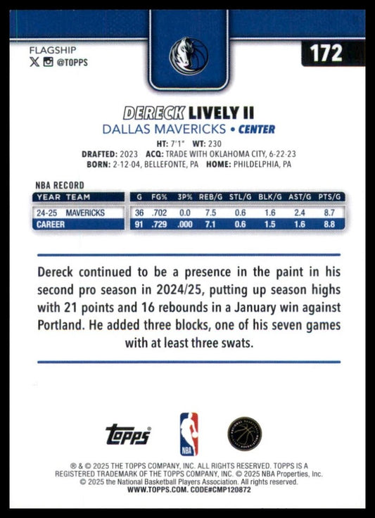 2025-26 Topps Dereck Lively II #172 Dallas Mavericks Basketball Card NBA Sports