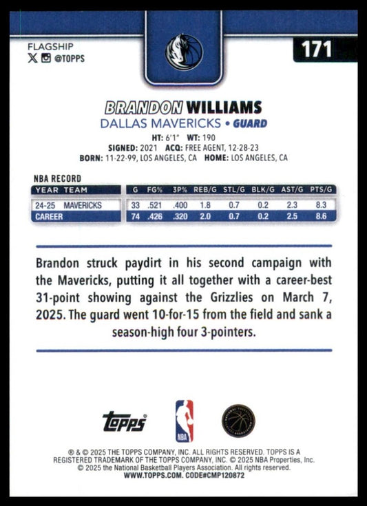 2025-26 Topps Brandon Williams #171 Dallas Mavericks Basketball Card NBA Sports