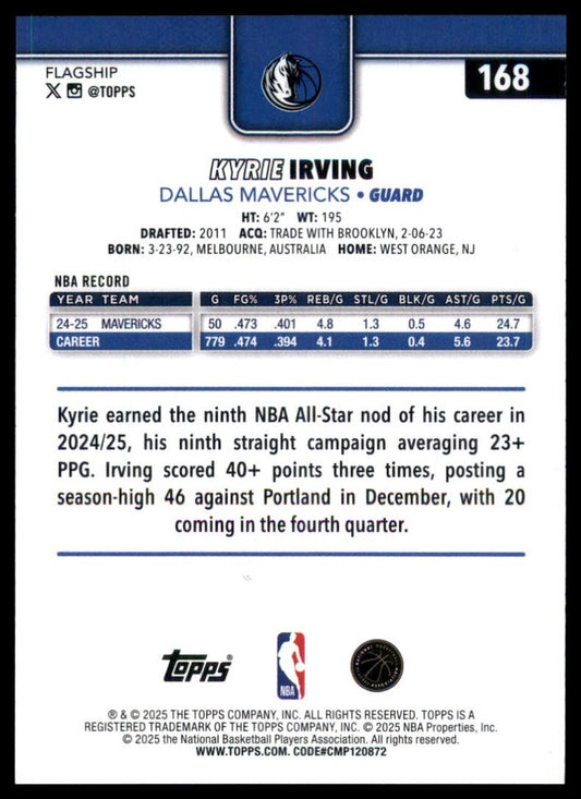2025-26 Topps Kyrie Irving #168 Dallas Mavericks Basketball Card NBA Sports