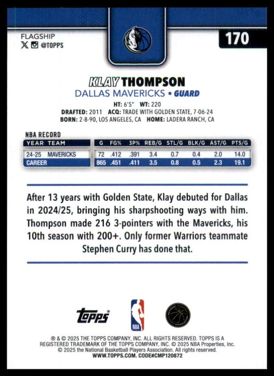 2025-26 Topps Klay Thompson #170 Dallas Mavericks Basketball Card NBA Sports