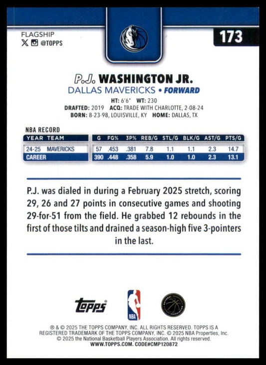 2025-26 Topps PJ Washington #173 Dallas Mavericks Basketball Card NBA Sports