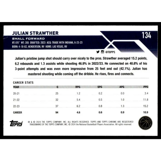 2023-24 Topps Chrome #134 Julian Strawther NM-MT Denver Nuggets Basketball Card