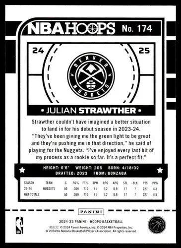 2024-25 Panini Hoops #174 Julian Strawther NM-MT Nuggets ID:79168