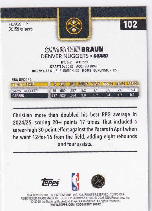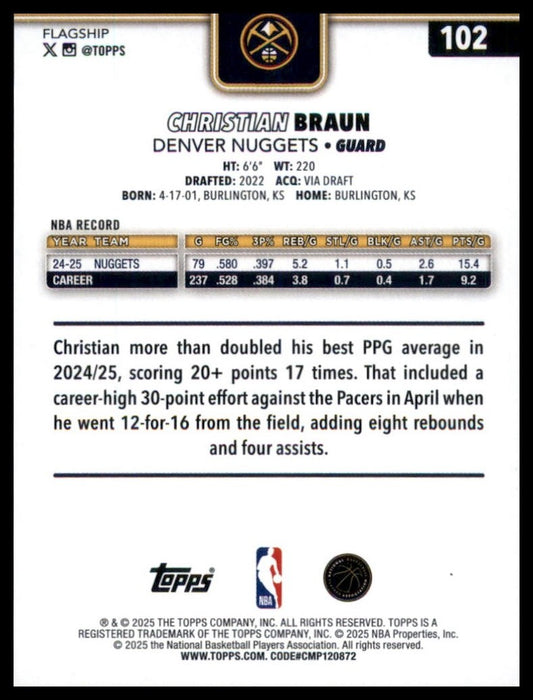 2025-26 Topps Christian Braun #102 Denver Nuggets Basketball Card NBA Sports