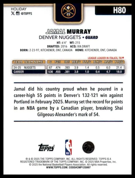 2025-26 Topps Holiday Jamal Murray #H80 Denver Nuggets Basketball Card NBA Sport