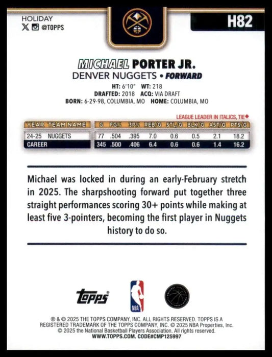 2025-26 Topps Holiday Michael Porter Jr #H82 Denver Nuggets Basketball Card NBA