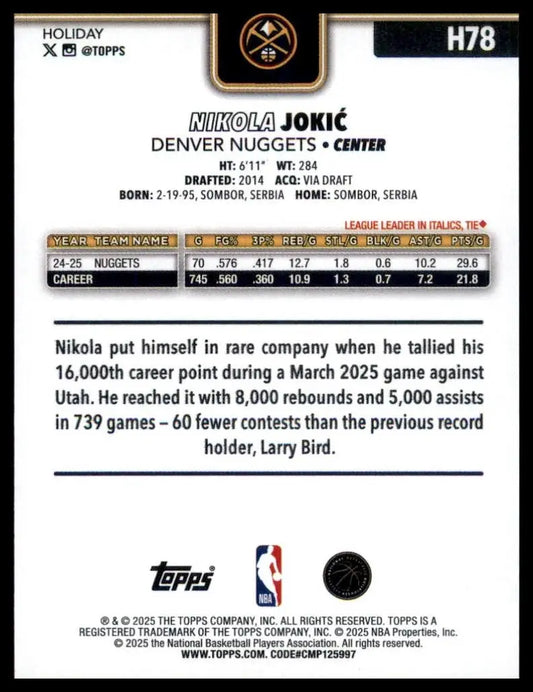 2025-26 Topps Holiday Nikola Jokic #H78 Denver Nuggets Basketball Card NBA Sport