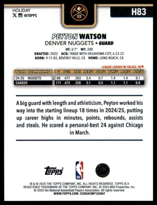 2025-26 Topps Holiday Peyton Watson #H83 Denver Nuggets Basketball Card NBA