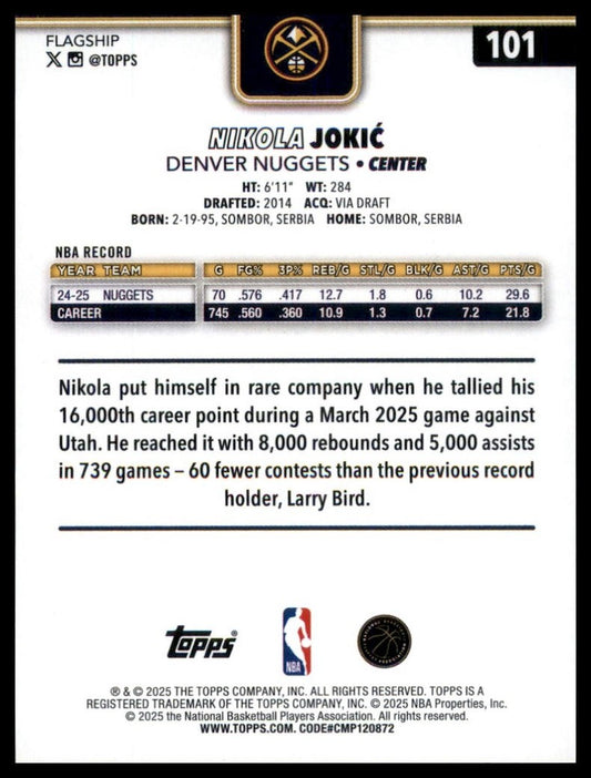 2025-26 Topps Nikola Jokic #101 Denver Nuggets Basketball Card NBA Sports