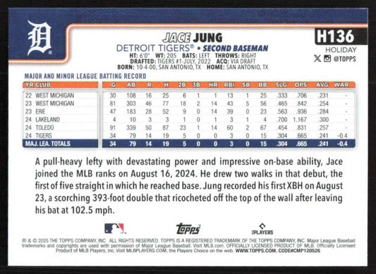 2025 Topps Holiday #H136 Jace Jung NM-MT RC Rookie Tigers ID:79937