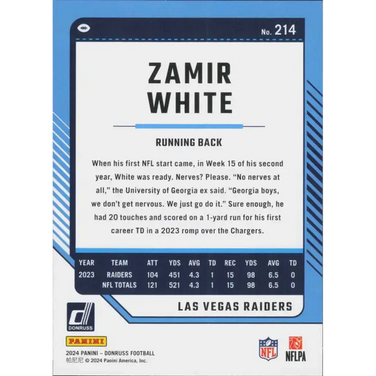 2024 Donruss #214 Zamir White NM-MT Las Vegas Raiders Football Card