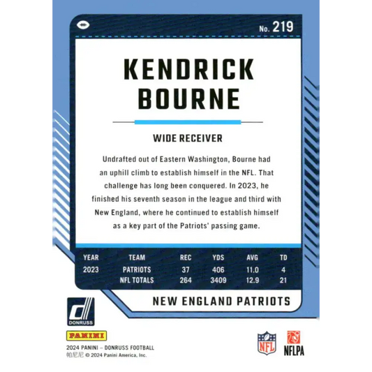 2024 Donruss #219 Kendrick Bourne NM-MT New England Patriots Football Card