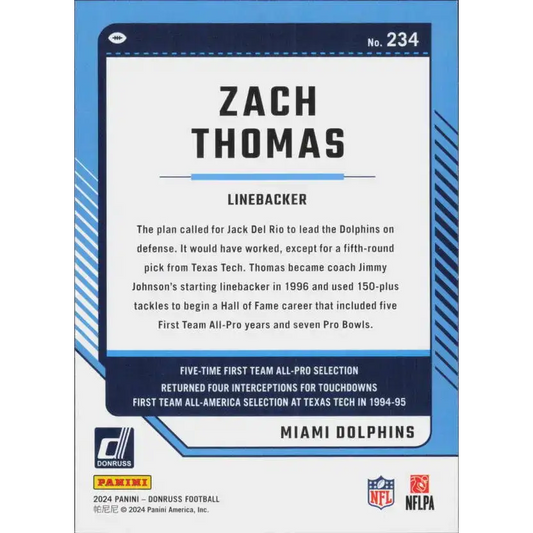 2024 Donruss #234 Zach Thomas NM-MT Miami Dolphins Football Card