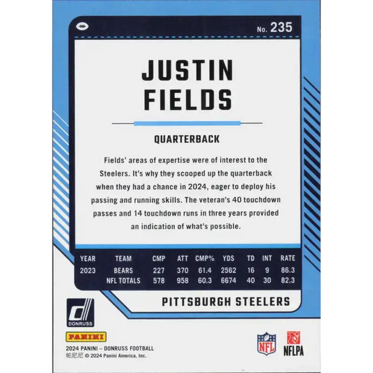 2024 Donruss #235 Justin Fields NM-MT Pittsburgh Steelers Football Card