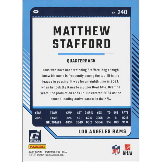 2024 Donruss #240 Matthew Stafford NM-MT Los Angeles Rams Football Card