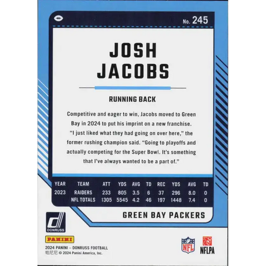 2024 Donruss #245 Josh Jacobs NM-MT Green Bay Packers Football Card