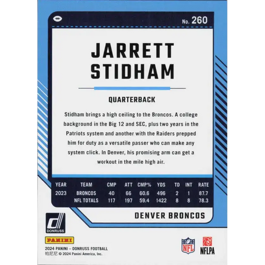 2024 Donruss #260 Jarrett Stidham NM-MT Denver Broncos Football Card