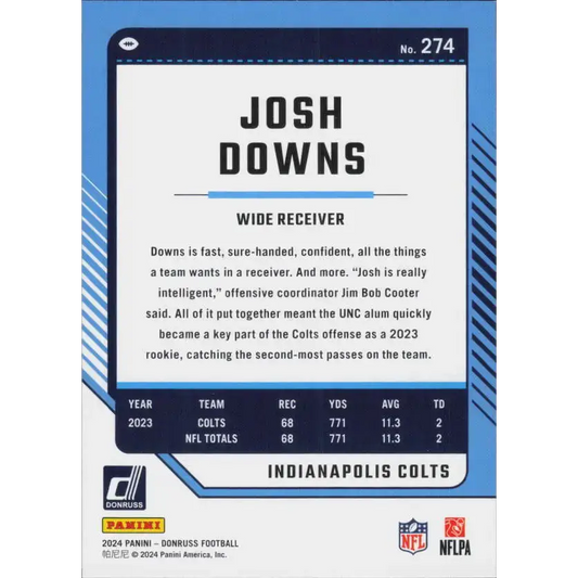 2024 Donruss #274 Josh Downs NM-MT Indianapolis Colts Football Card