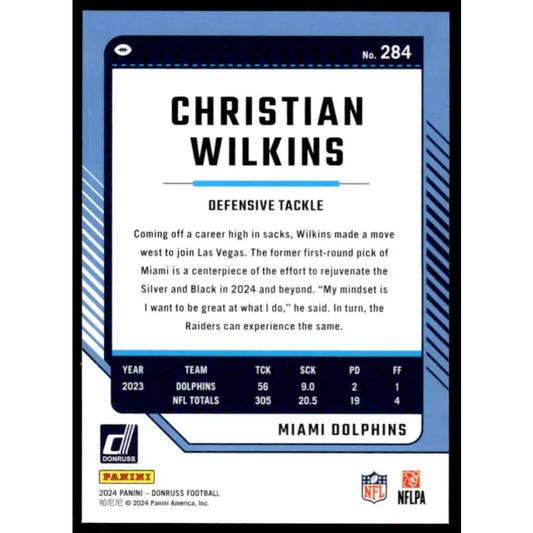 2024 Donruss #284 Christian Wilkins NM-MT Miami Dolphins Football Card