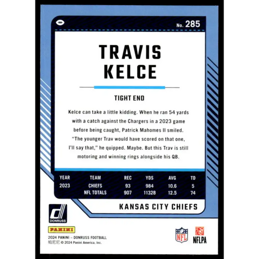 2024 Donruss #285 Travis Kelce NM-MT Kansas City Chiefs Football Card