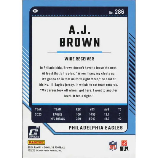 2024 Donruss #286 A.J. Brown NM-MT Philadelphia Eagles Football Card