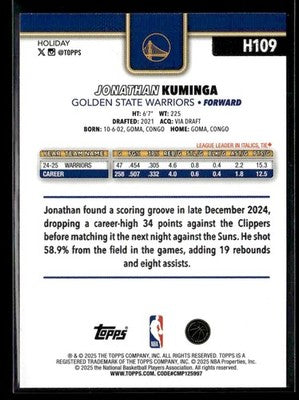 2025-26 Topps Holiday Jonathan Kuminga #H109 Golden State Warriors