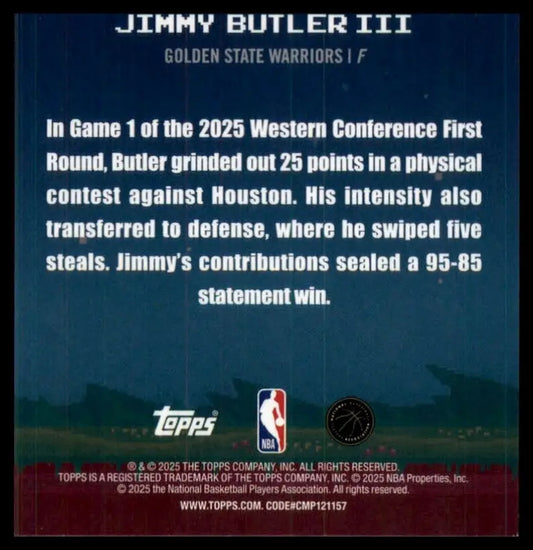 2025-26 Topps Power Players Jimmy Butler III #PP-10 Golden State Warriors Card